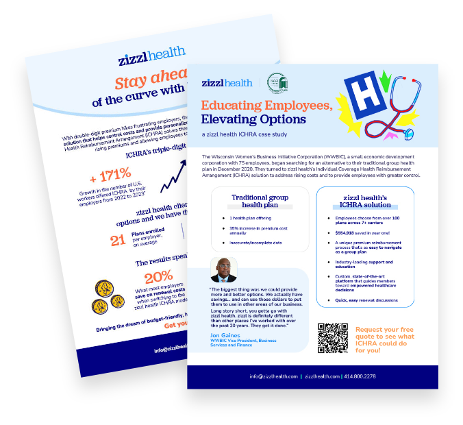 If your clients are facing year-over-year increases or seeking to offer a broader range of choices to their employees with less hassle, zizzl health’s ICHRA solution is your new go-to.